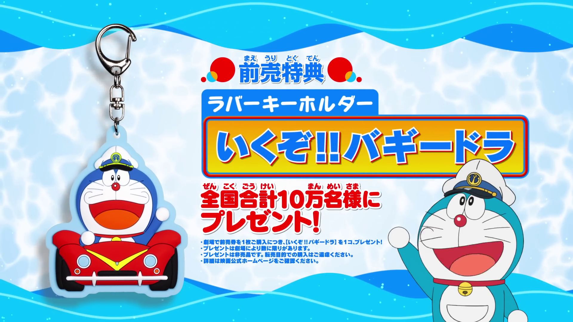 購買預售票送預售限定特典「出發!海底車哆啦/出發!旅行車多啦」(いくぞ!!バギードラ)。預售票限定特典有船長造型的哆啦A夢乘坐著海底車(旅行車)向大家招手的圖案。