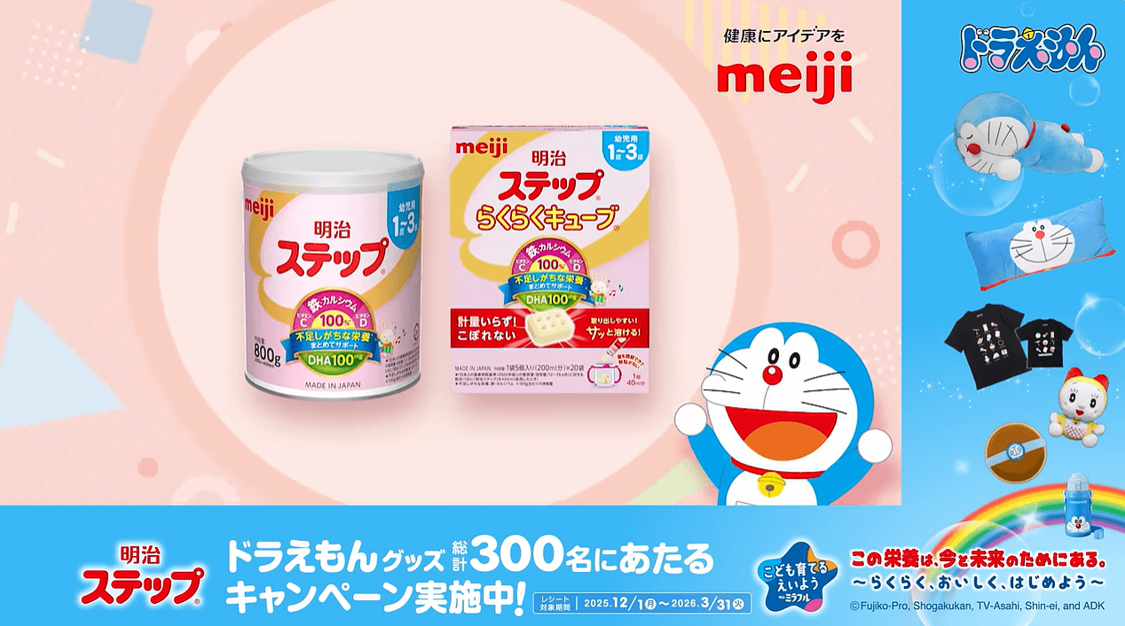 協助幼兒補充成長所需營養的「明治Step」與「明治Milafuru」,自2025年12月開始,展開首次與哆啦A夢的聯名活動!