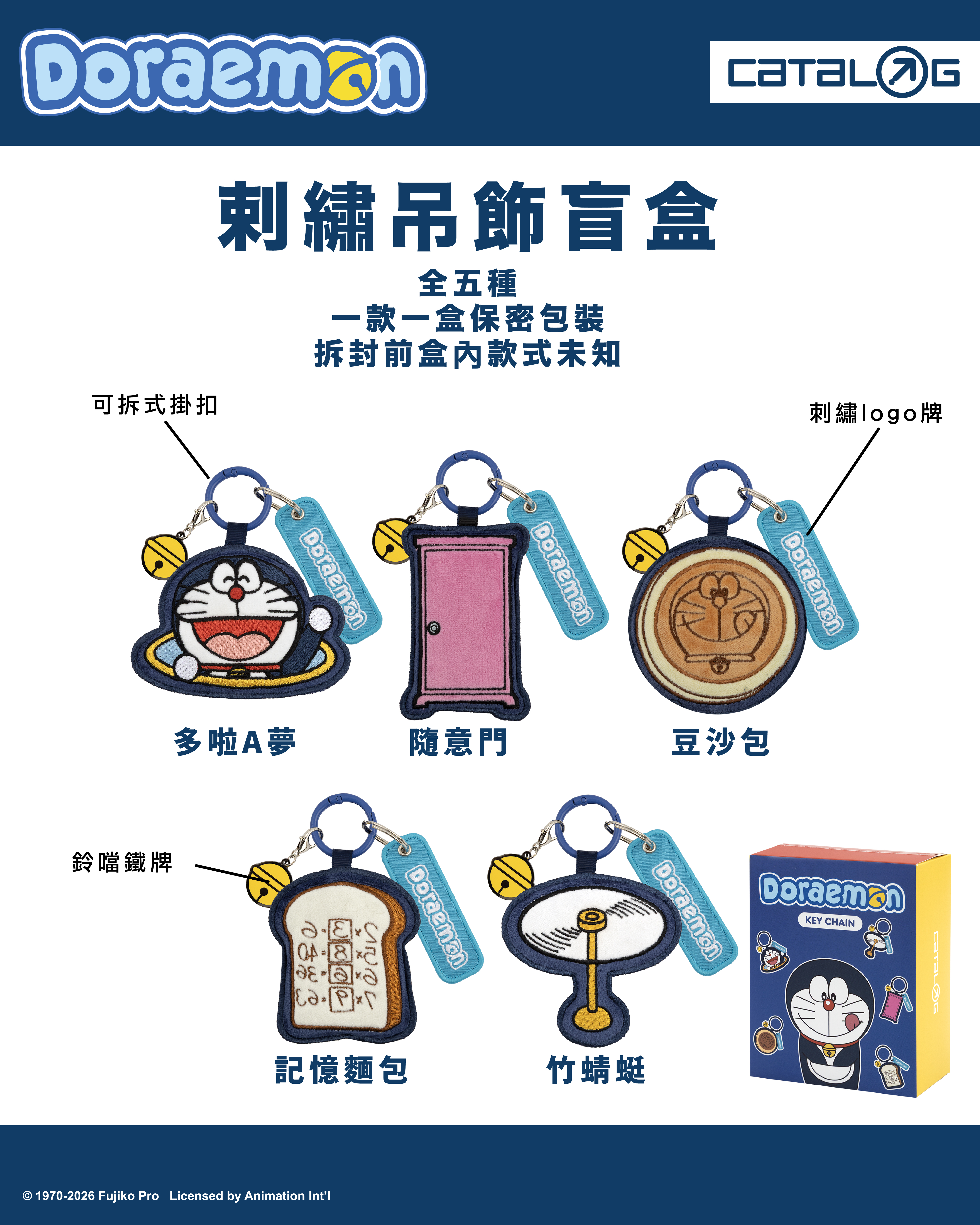 CATALOG 全新多啦A夢聯名分別以「日常系列」與「新年系列」亮相,現正發售的日常系列圍繞著多啦A夢的經典藍白調,並延續過往聯乘採用的深藍色系設計,以多啦A夢與各款神奇法寶為主的週邊登場。