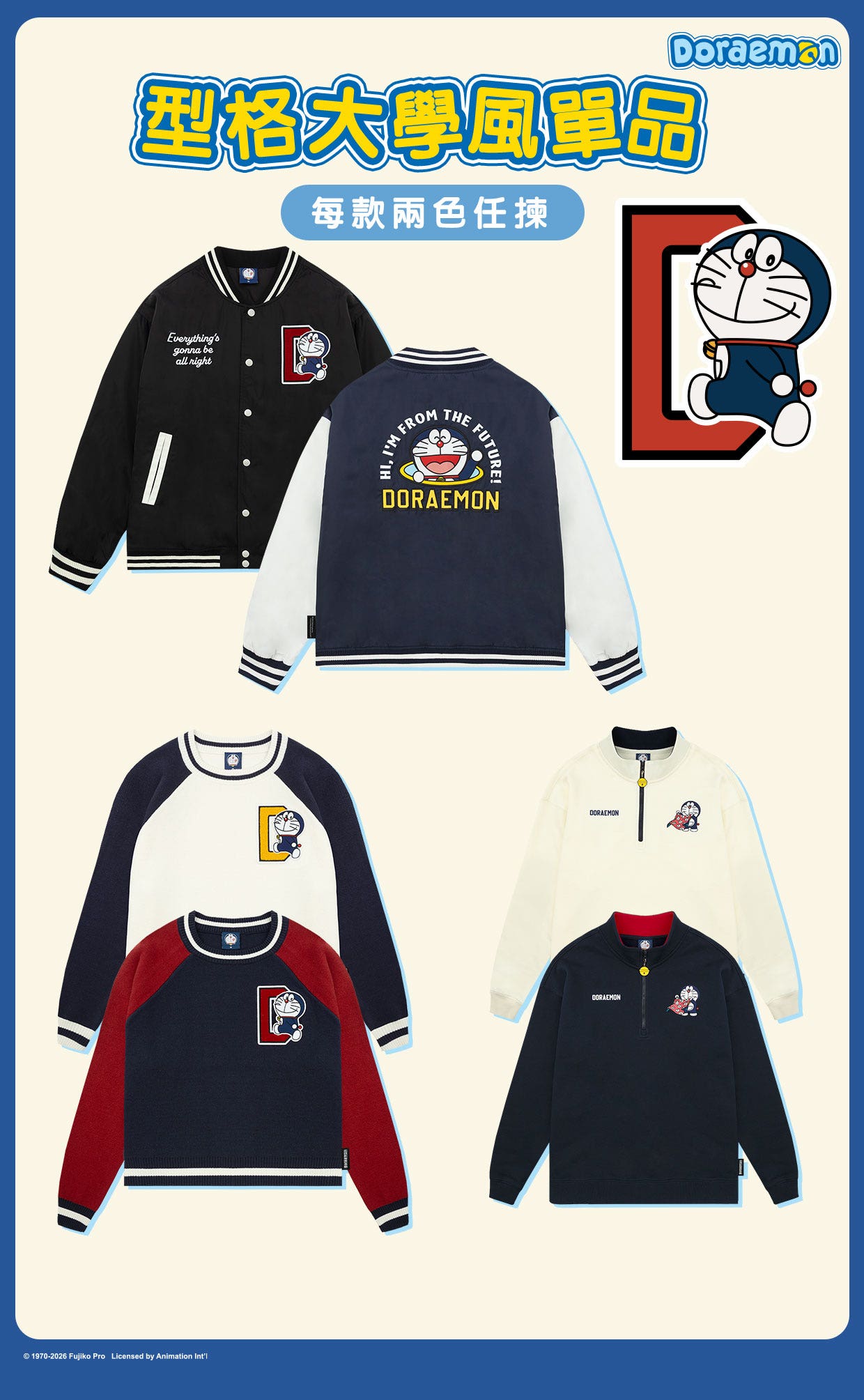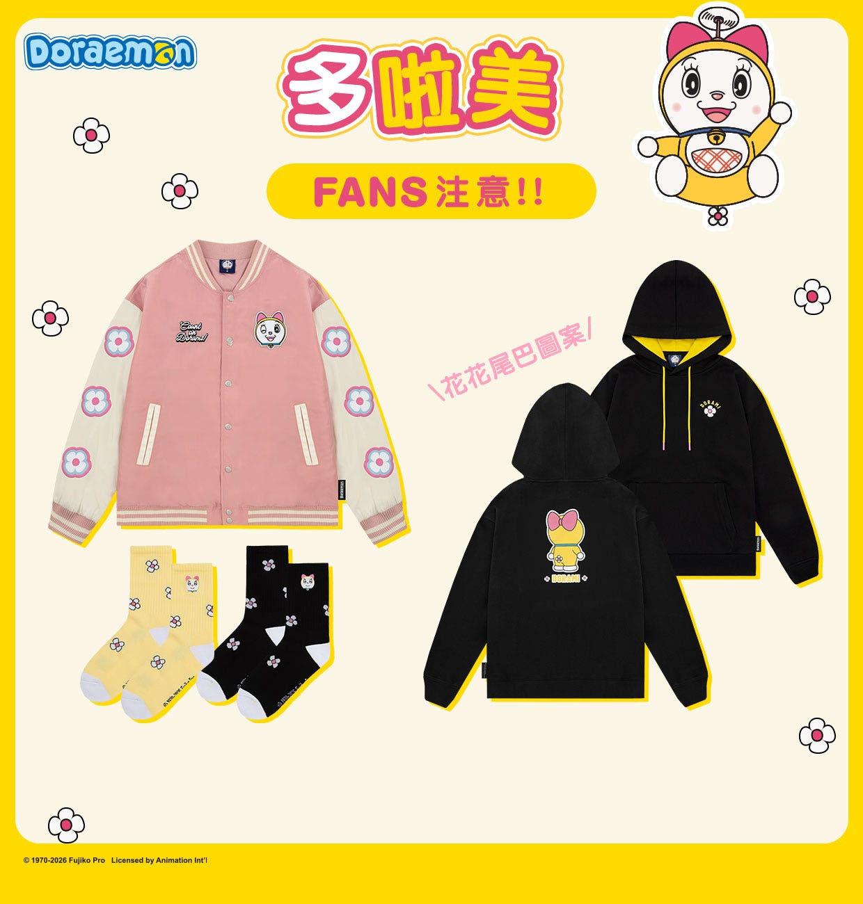 系列主打當然要看服飾週邊,各種以多啦A夢為核心的百搭衛衣、輕暖外套、針織單品、長襪款式眾多,典型復古與時尚設計通通都有!這次連多啦美都有幾款專屬設計的衣物,適合喜歡多啦兄妹的大人小朋友!