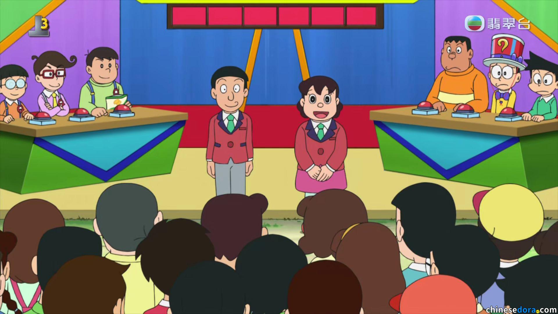 凌晞本身亦是《多啦A夢》另一位女同學(身形略胖、粉紅色裙)的常任配音員。(資料圖片,節目截圖)