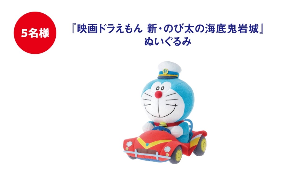只要在「淺田飴 哆啦A夢商品」官方活動網站正確回答問題,就有機會抽中《電影哆啦A夢:新・大雄的海底鬼岩城》電影觀賞券(MoviTicket)或哆啦A夢絨毛玩偶等豐富好禮,總計將抽出 75 名幸運得主,詳情可洽官方活動網頁(日文)。