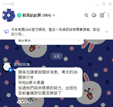 (「動漫趴趴購」LINE 社群截圖)