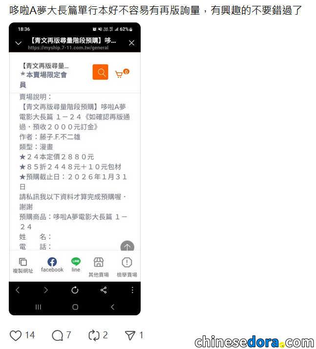 這次《哆啦A夢大長篇》因金額較大,對出版社而言壓力不小,因此這次更傾向以「全通路需求統計」與各書商的社群調查,作為是否再版的關鍵依據。