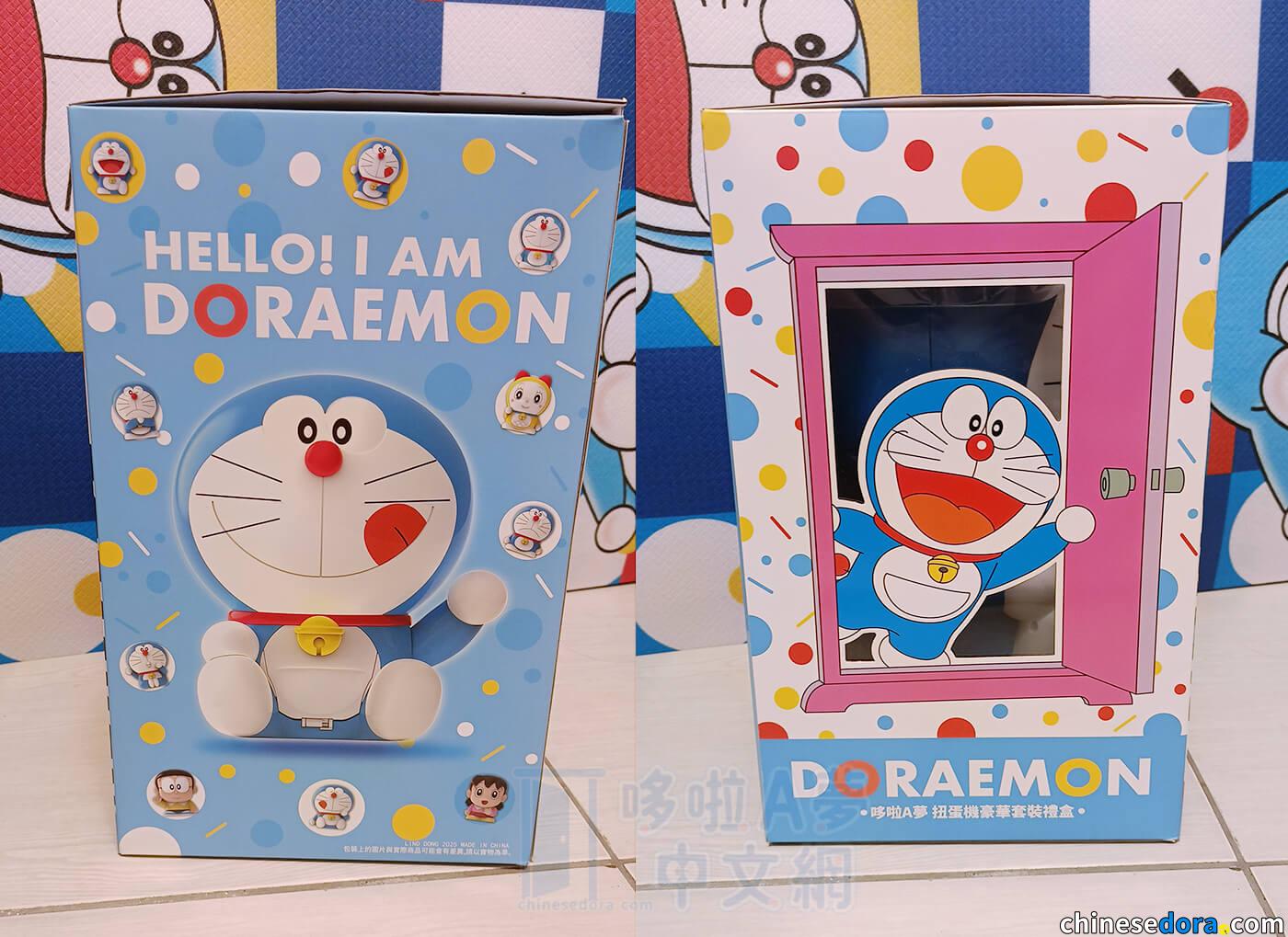 禮盒與內容物由廣州靈動創想設計,從外包裝即可感受到滿滿哆啦元素!禮盒正面採用大面積透明開窗設計,讓哆啦A夢扭蛋機的本體直接映入眼簾。圓滾滾的身形搭配好好吃的表情,盒裝設計相當適合作為送禮用途。
