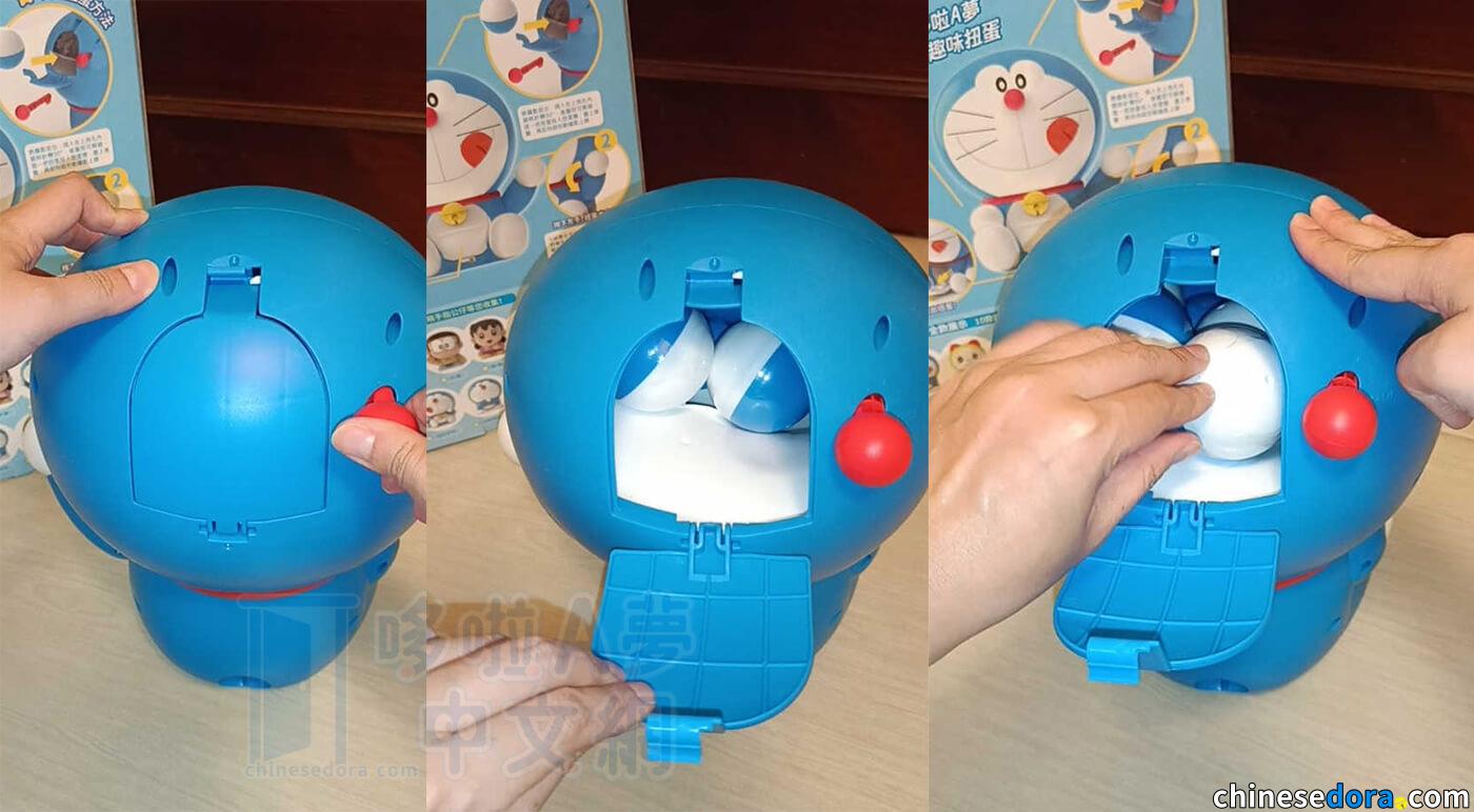 插上哆啦A夢的紅色尾巴,向右旋轉,就能開始玩扭蛋囉!壓下哆啦A夢的左手開關,第一顆扭蛋會是什麼款式呢?