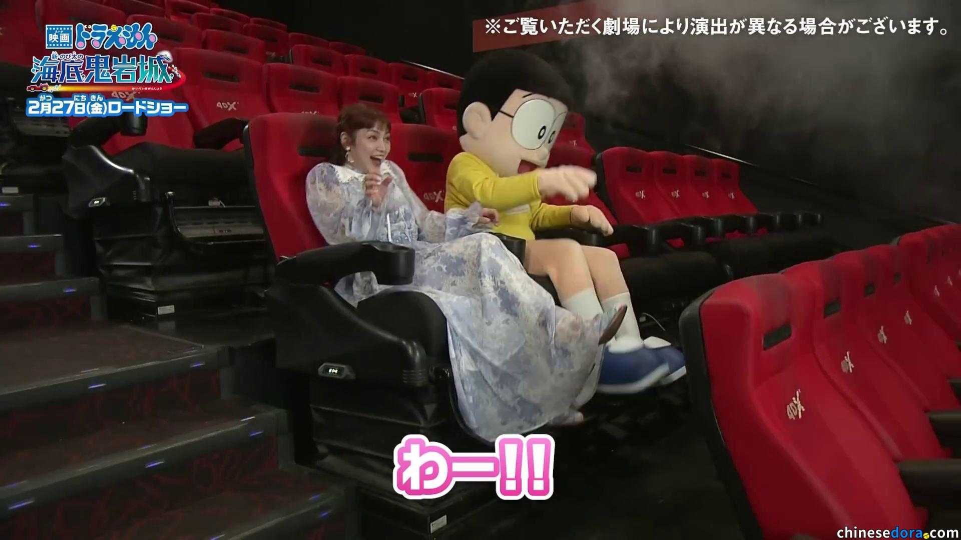 MX4D®・4DX 技術製造出座椅可前後左右上下移動、震動、噴香氣、燈光、吹風甚至噴水等效果,跟正片劇情完美配合,為觀眾帶來身臨其境的感覺,彷彿置身在哆啦A夢和朋友乘坐的祕密道具「海底車」(神奇法寶「水底旅行車」)上,一同參與海底冒險之旅!一定要到戲院藉著 4D 感受嶄新的哆啦A夢世界。