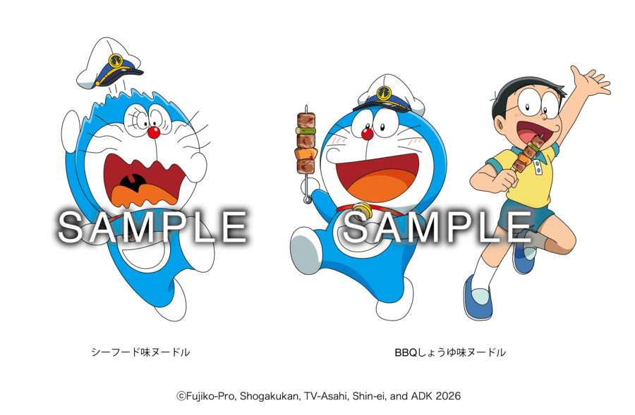 為紀念《電影哆啦A夢:新・大雄的海底鬼岩城》於 2026 年 2 月 27 日上映,明星食品將於 2026 年 2 月 23 日(一)在日本全國推出兩款期間限定口味的聯名杯麵