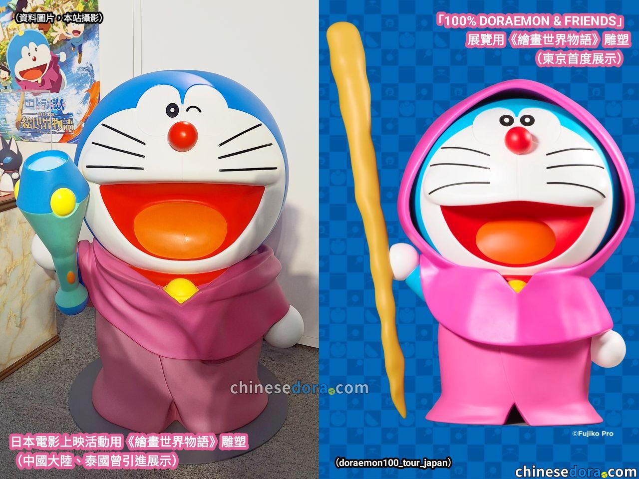這款展覽用雕塑跟先前的不同。之前在日本景點、電影上映宣傳等場合出現的雕塑是長袍沒有蓋過頭、手拿「進入燈」的造型,後來也曾在中國大陸及泰國展示;而這次是長袍蓋過頭、拿著手杖的造型,預計為「100% DORAEMON & FRIENDS」展覽專用的特製版本(部分電影雕塑亦如是)。