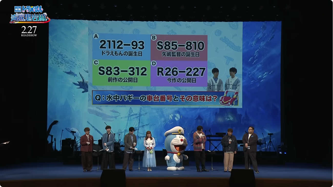 讀者們也可以猜猜看正確答案喔!(《新・大雄的海底鬼岩城》公開直前特別試映會 影片截圖)