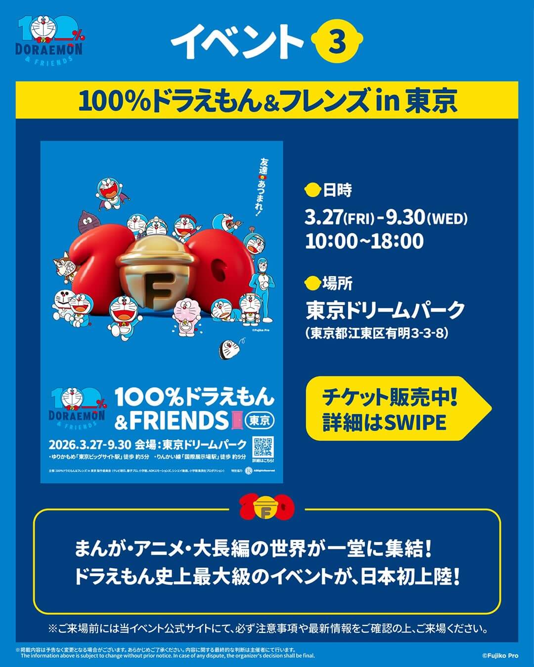 備受矚目的巡迴特展「100% DORAEMON & FRIENDS(100%ドラえもん&フレンズ ドローンショー)」預計 2026 年 3 月 27 日正式在日本東京舉辦。此項活動被譽為哆啦A夢(港:多啦A夢)史上規模最大的展覽之一,內容涵蓋了漫畫、動畫以及大長篇電影等多元面向。開幕之前,日本官方規劃了一系列預熱活動,引導大眾搶先體驗。