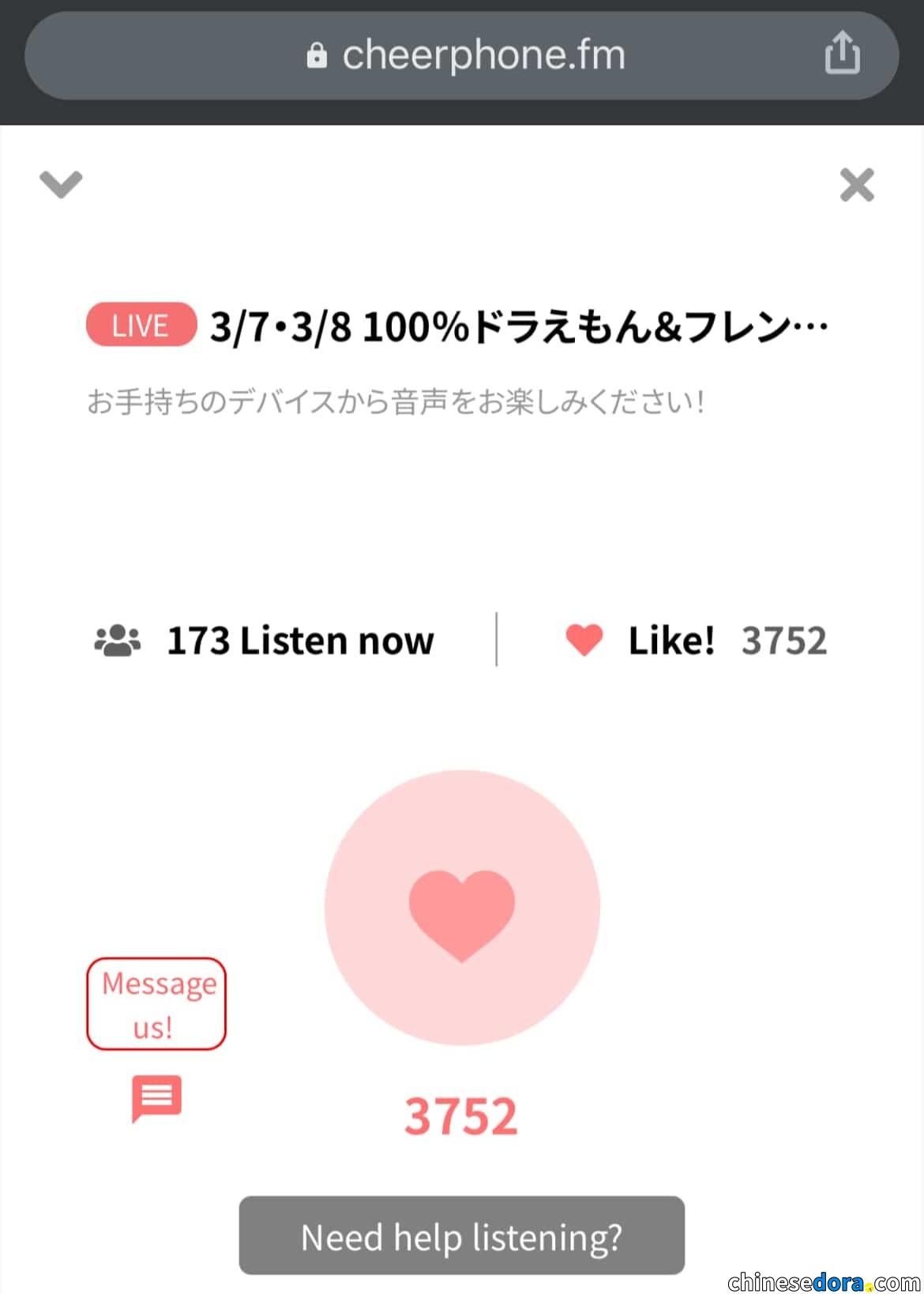 據現場觀眾表示,台場海濱公園的廣播尚算清晰,不過有時候人群交談的聲音過大就可能會蓋過。而在公園內開啟突設的廣播平台也能聽到表演的背景音樂,正式開始前奏陸續有會場附近的使用者加入收聽,連線效果尚可。