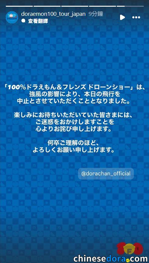 距離日本「100% DORAEMON & FRIENDS 無人機匯演」東京第二回上演時間不足 2 小時,主辦單位突發宣佈系統出現故障,正在確認能否如常舉行。(追記:日本時間下午 5 時 58 分最新宣佈確定如常舉行)