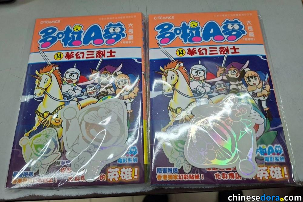 最新再版的《多啦A夢大長篇14 夢幻三劍士〔新裝版〕》隨書附送「香港獨家幻彩貼紙」,售價為港幣 38 元,與現時發售的《多啦A夢》第 1-45 卷及《多啦A夢PLUS》第 1-7 卷 單行本定價相同。