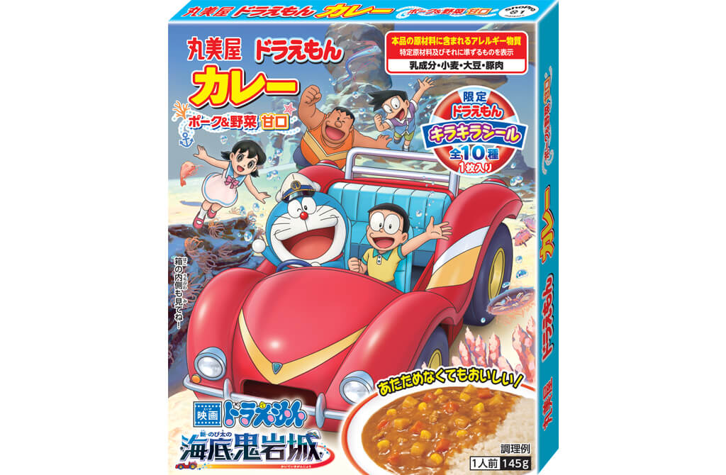 隨著《電影哆啦A夢:新・大雄的海底鬼岩城》於日本熱烈上映,多款聯名食品也正式換上電影限定包裝!包含口感清爽的「蘇打泡泡糖」以及深受孩童喜愛的「丸美屋咖哩」,都推出了充滿海底冒險色彩的新設計。