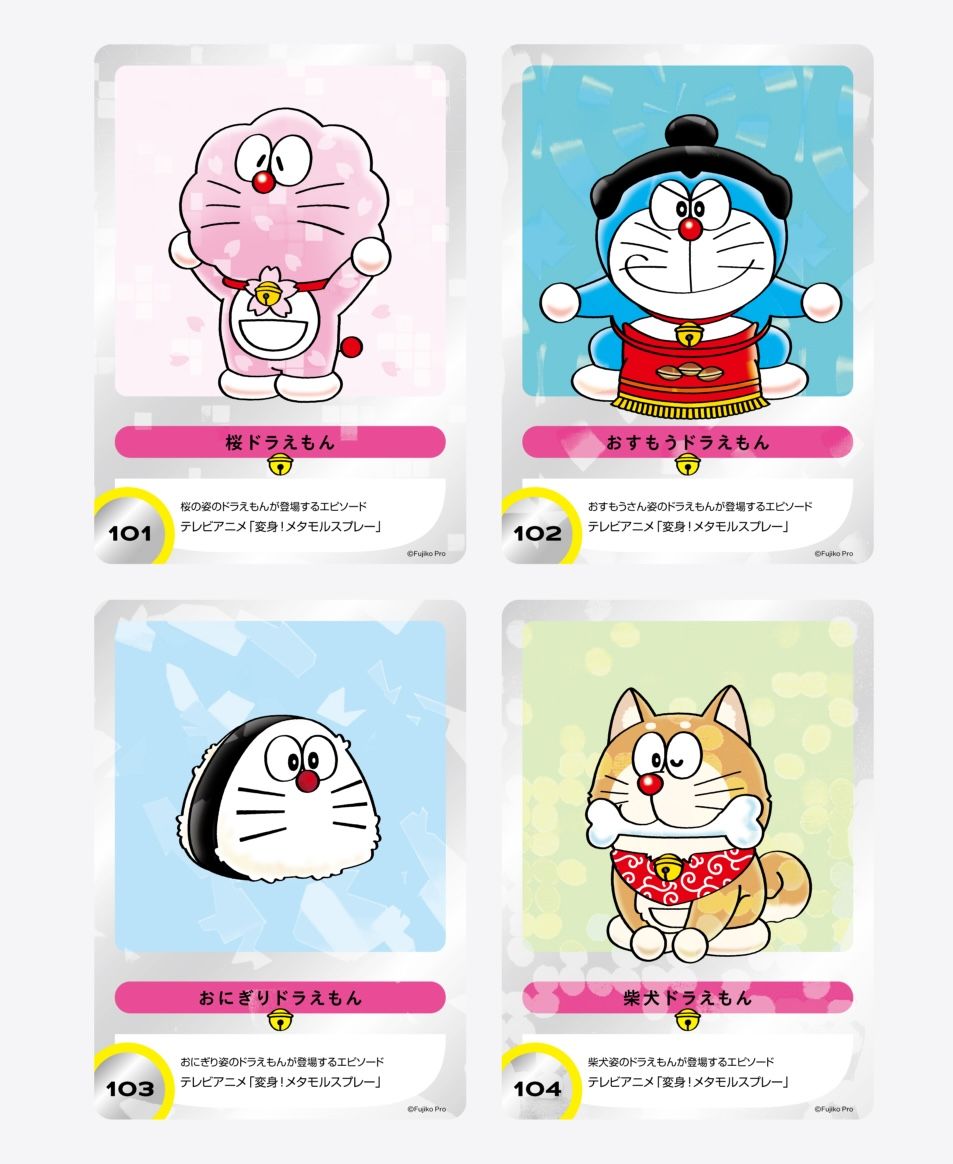 這些「日本會場原創造型小卡」(非賣品)共有 4 款卡面,分別是櫻花、相撲手、飯糰及柴犬造型的哆啦A夢 [台譯]/多啦A夢 [港譯]。卡片上有造型名稱、編號及簡介出處,正面更採用特殊工藝處理,在光線下可呈現閃光效果。