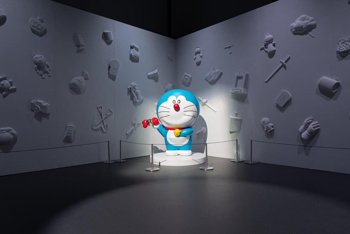 最後就會來到「祕密道具空間/法寶空間」。昔日至今仍然在日本各地及海外露面的雕塑群,當中的「道具/法寶」以藤子.F.不二雄博物館入口的牆壁浮雕技術展示,還有一隻拿出「100%朋友召喚鈴」的雕塑站在射燈之下,搶眼奪目。