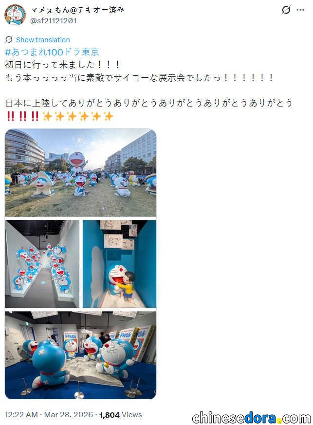 巡迴世界各地後,首度在日本舉辦的「100% DORAEMON & FRIENDS」東京展覽,已於 3 月 27 日在東京有明的 TOKYO DREAM PARK 正式開幕。隨著開幕首日與隔日(3月28日)大量參觀者湧入,X(Twitter)上也迅速出現實地觀展心得與現場情況分享。