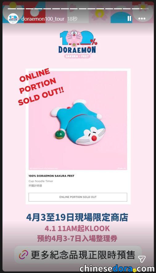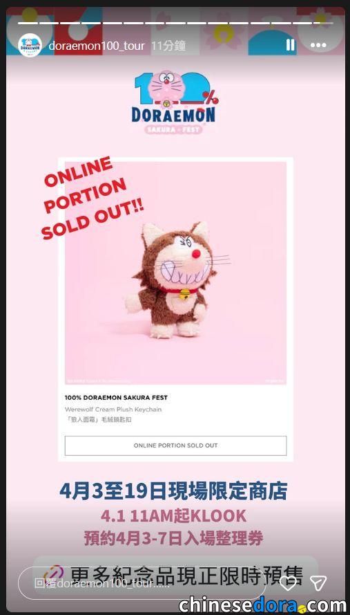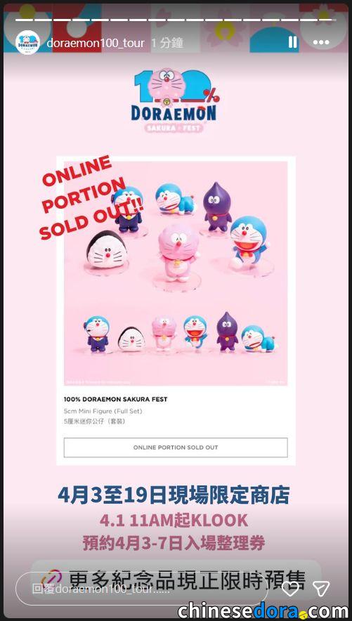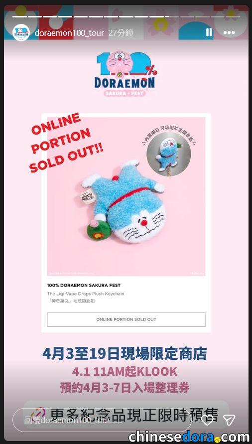 主辦單位從展覽與活動特設的社交平台帳號發佈限時動態,公佈紀念品網上售罄的消息。(資料圖片,Doraemon 100)