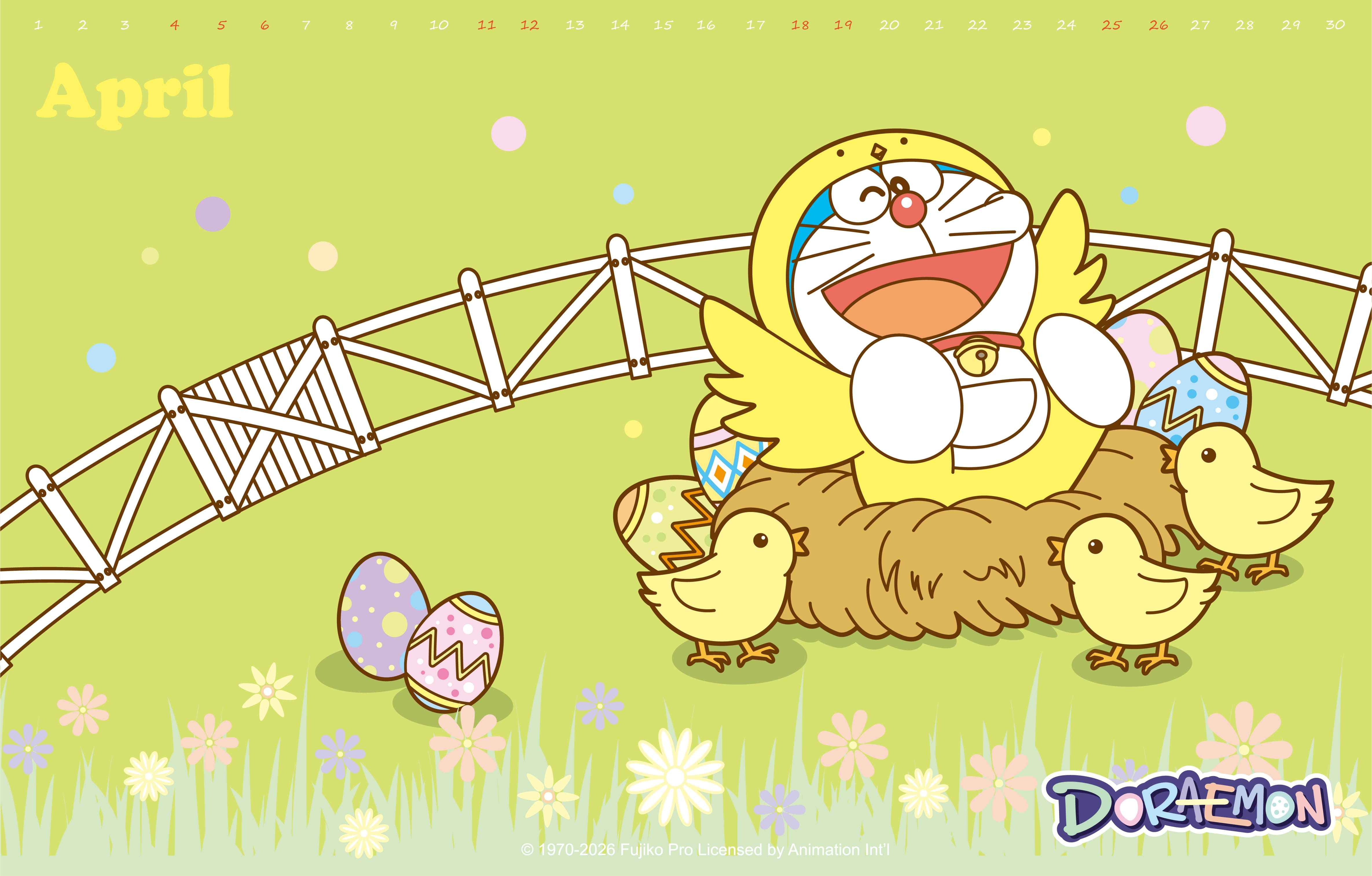 哆啦A夢變身成小雞,預祝大家復活節快樂!這款桌布分設手機及電腦版尺寸,電腦版桌布附有月曆。各版本均在網站公開開放下載