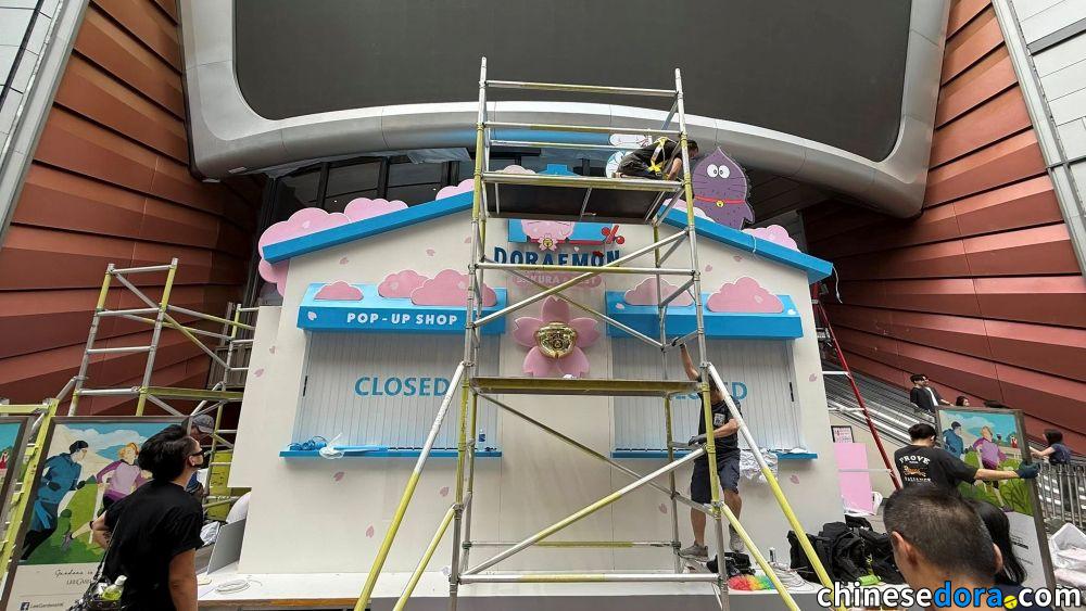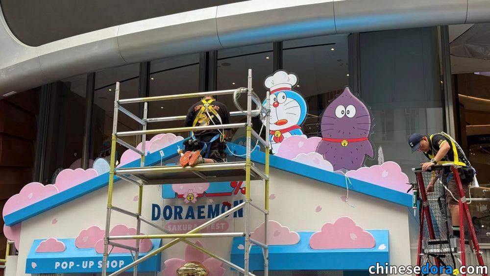 香港「100%多啦A夢櫻花節」4 月 3 至 19 日在銅鑼灣希慎廣場舉行,活動開始前幾天開始組裝現場佈置。