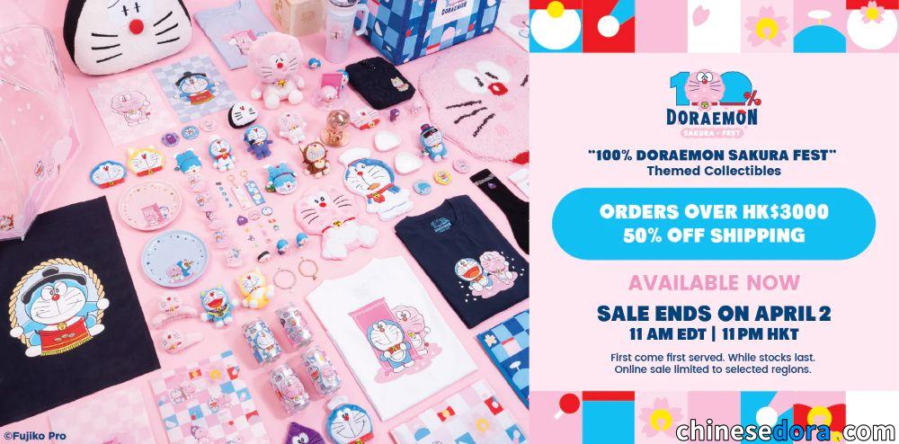「100%多啦A夢櫻花節」紀念品在 3 月 31 日上午 11 時至 4 月 2 日下午 11 時期間在網店 DDT Store 開放線上訂購。
