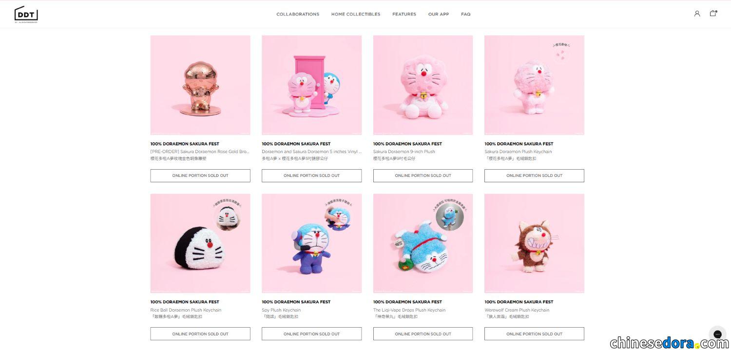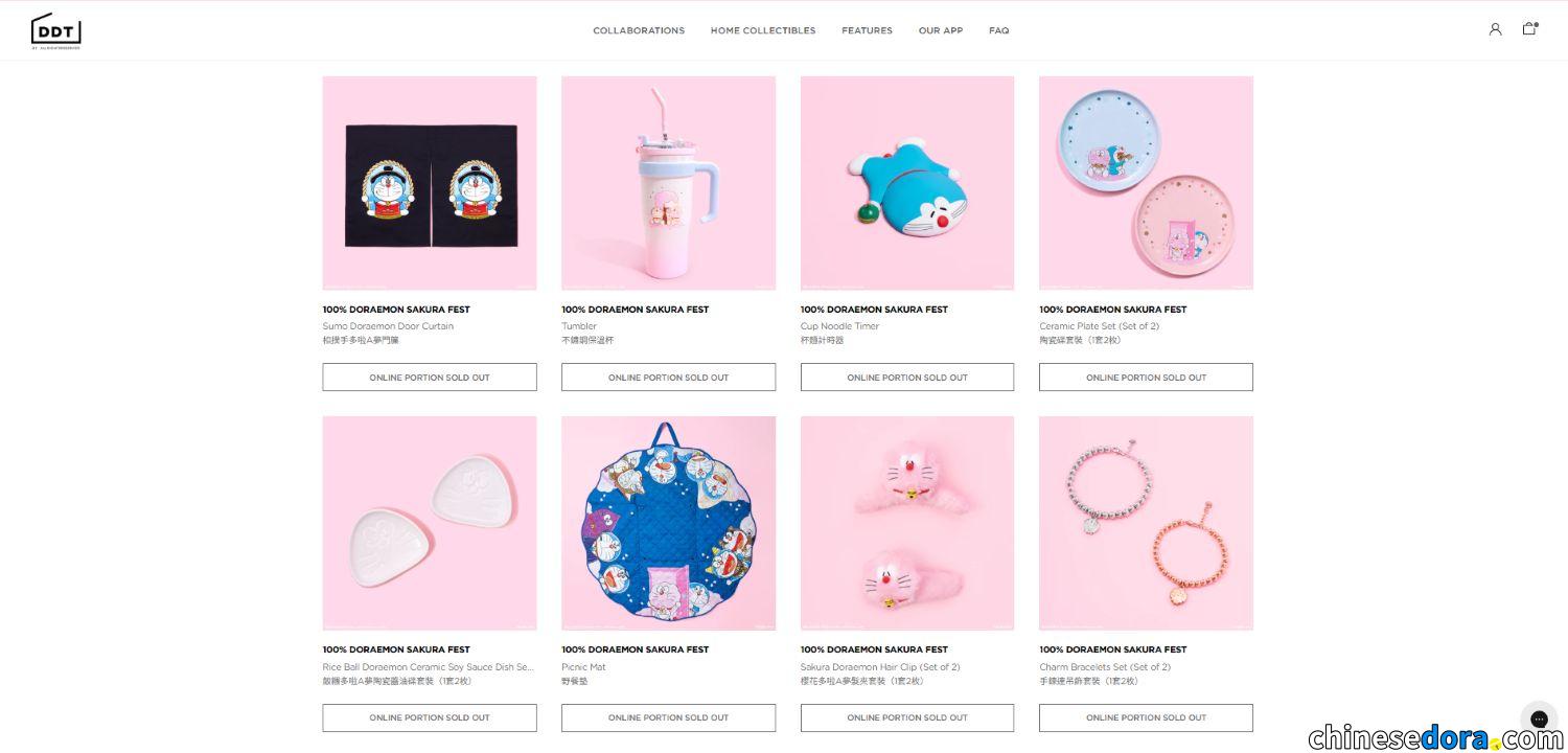 「100%多啦A夢櫻花節」紀念品線上搶先開賣,目前所有款式已在網店上顯示「網上配額售罄」。