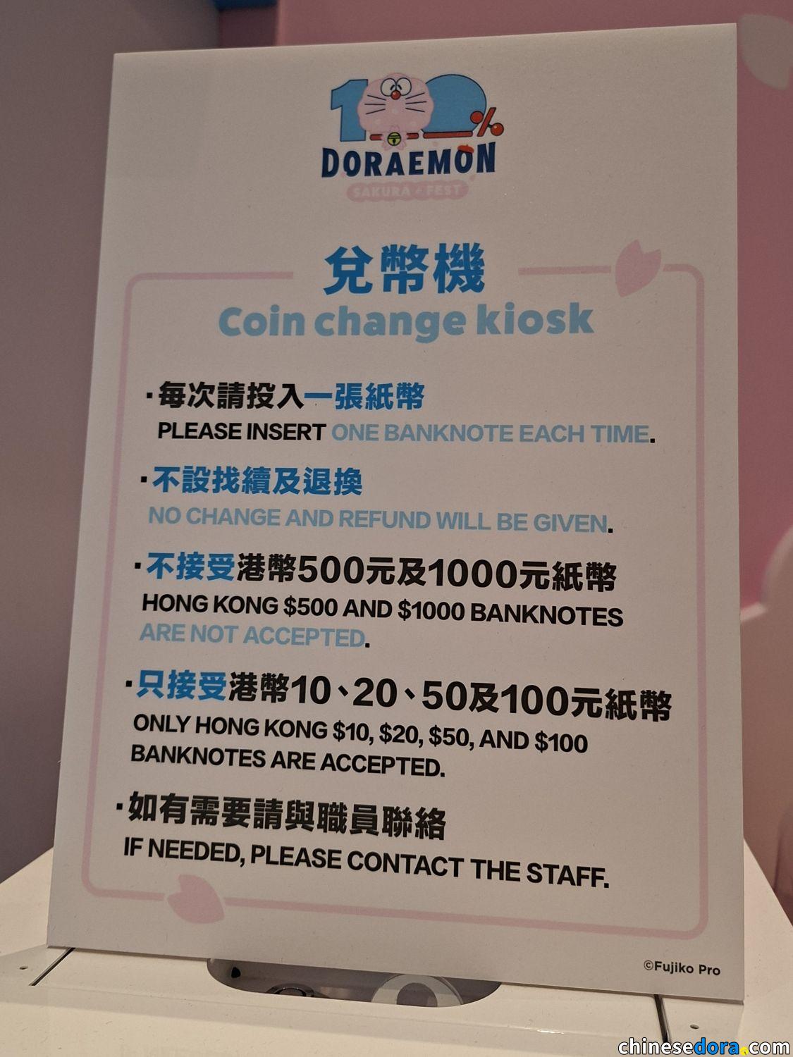 - 只接受港幣 10、20、50 及 100 元紙幣