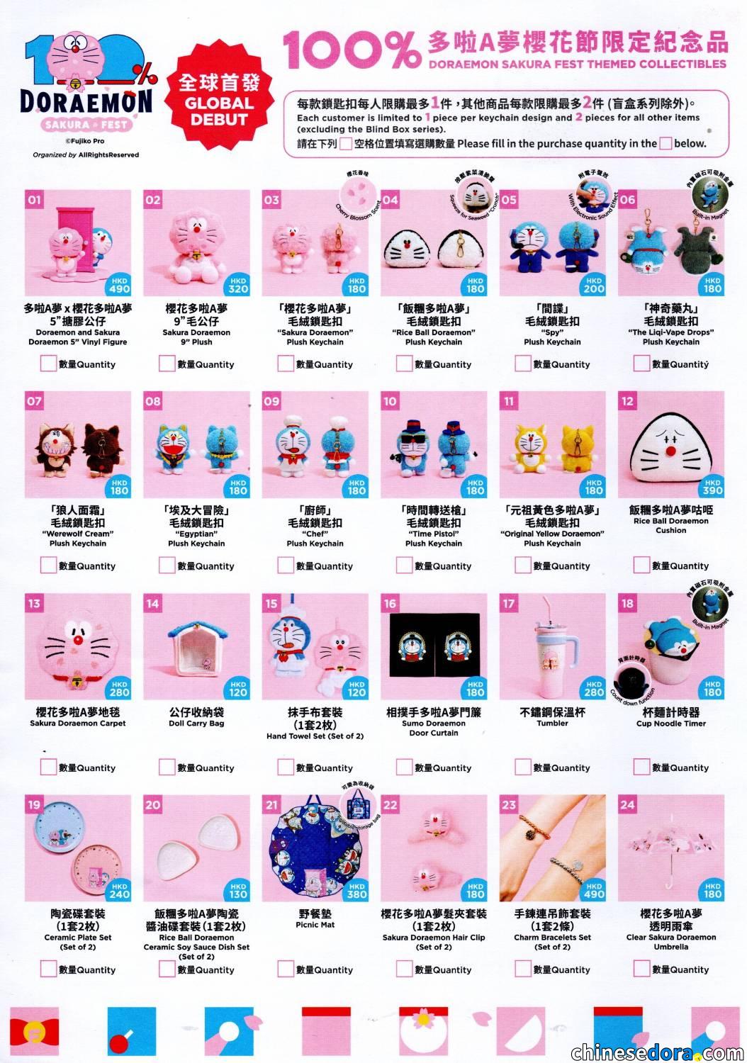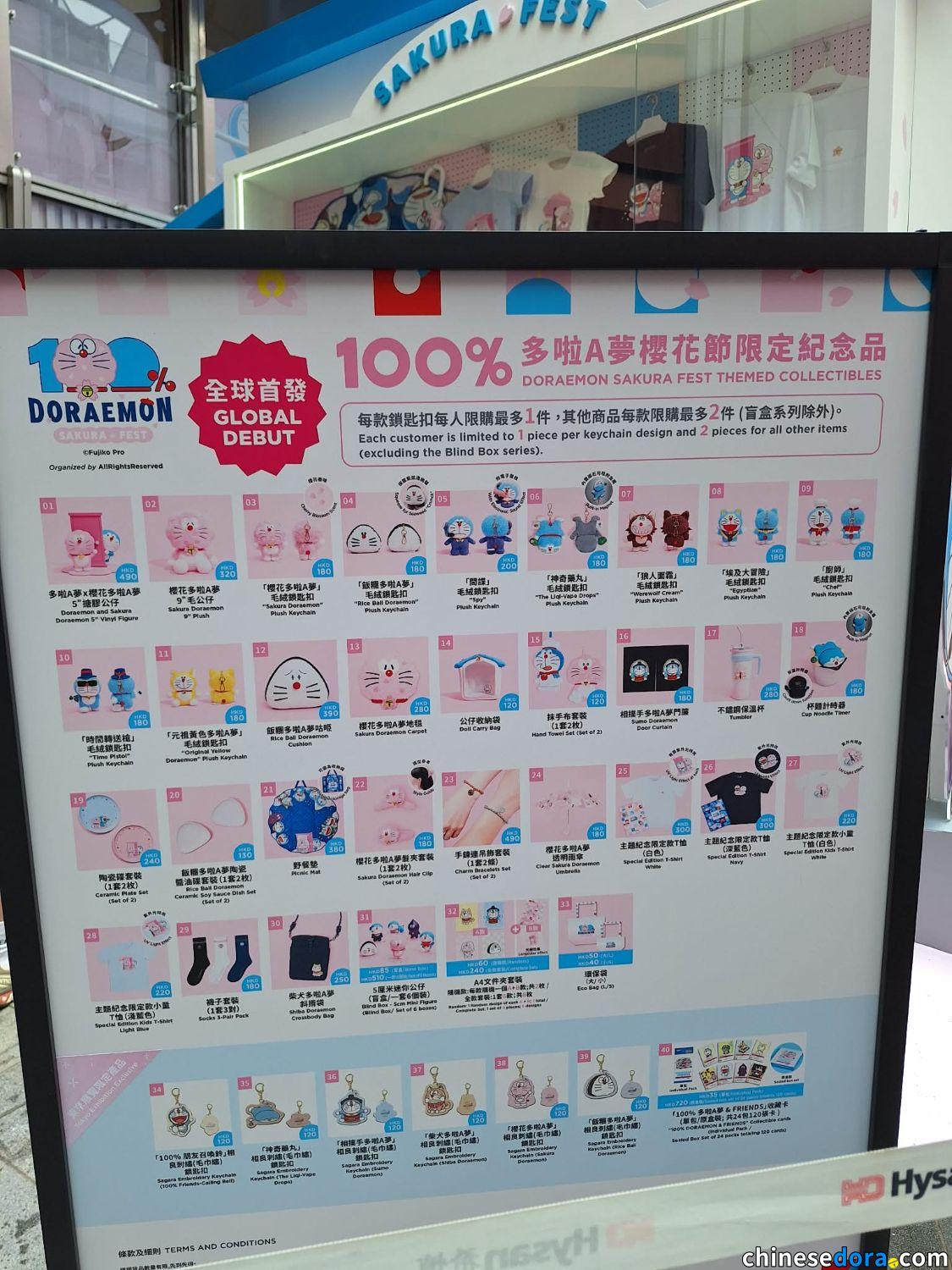 香港「100%多啦A夢櫻花節」在 4 月 3 至 19 日銅鑼灣希慎廣場期間限定舉行,現場有紀念品商店(要持有整理券入店)、手作區、遊戲區、扭蛋機、汽水販賣機、拍貼機,以下為這次活動的紀念品價格、發售安排、手作及遊戲收費規則等相關資料。
