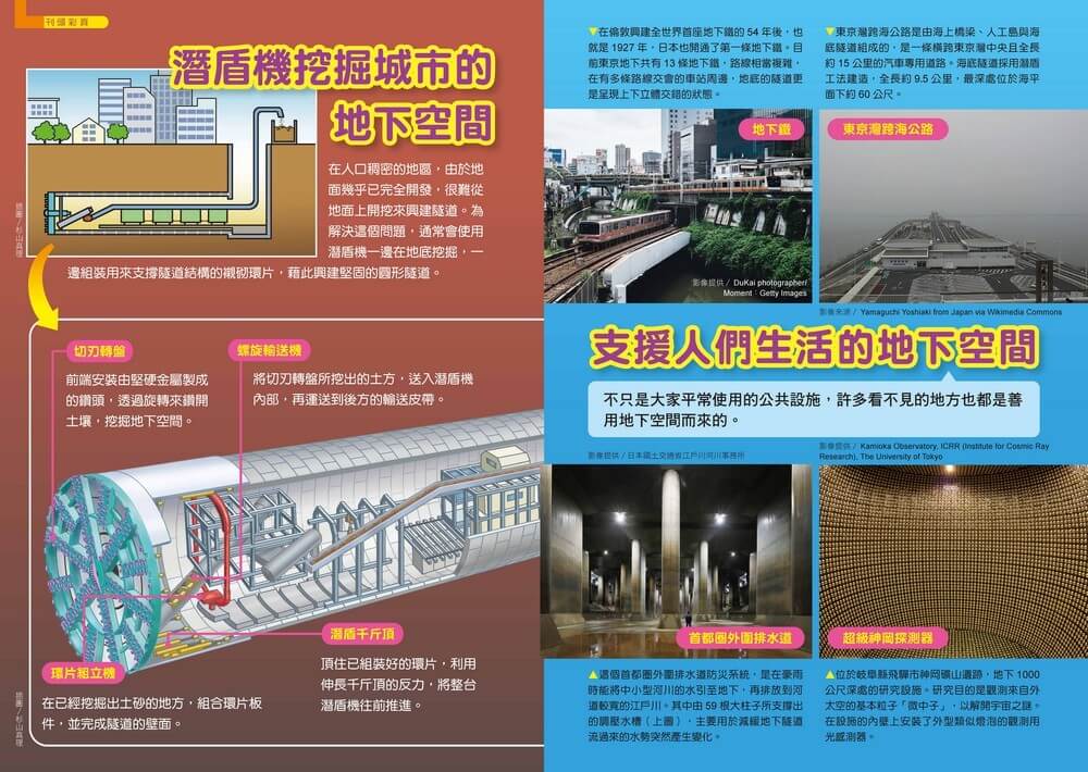 書中透過多篇漫畫故事,搭配圖文解說,介紹包括地下鐵與隧道的建造方式、鐘乳石洞與地底湖的形成、地熱與溫泉資源,以及地下空間在現代城市中的應用等內容。從遠古人類的洞穴生活,到現代地下交通網路與未來開發可能,呈現地下世界的多元面貌。