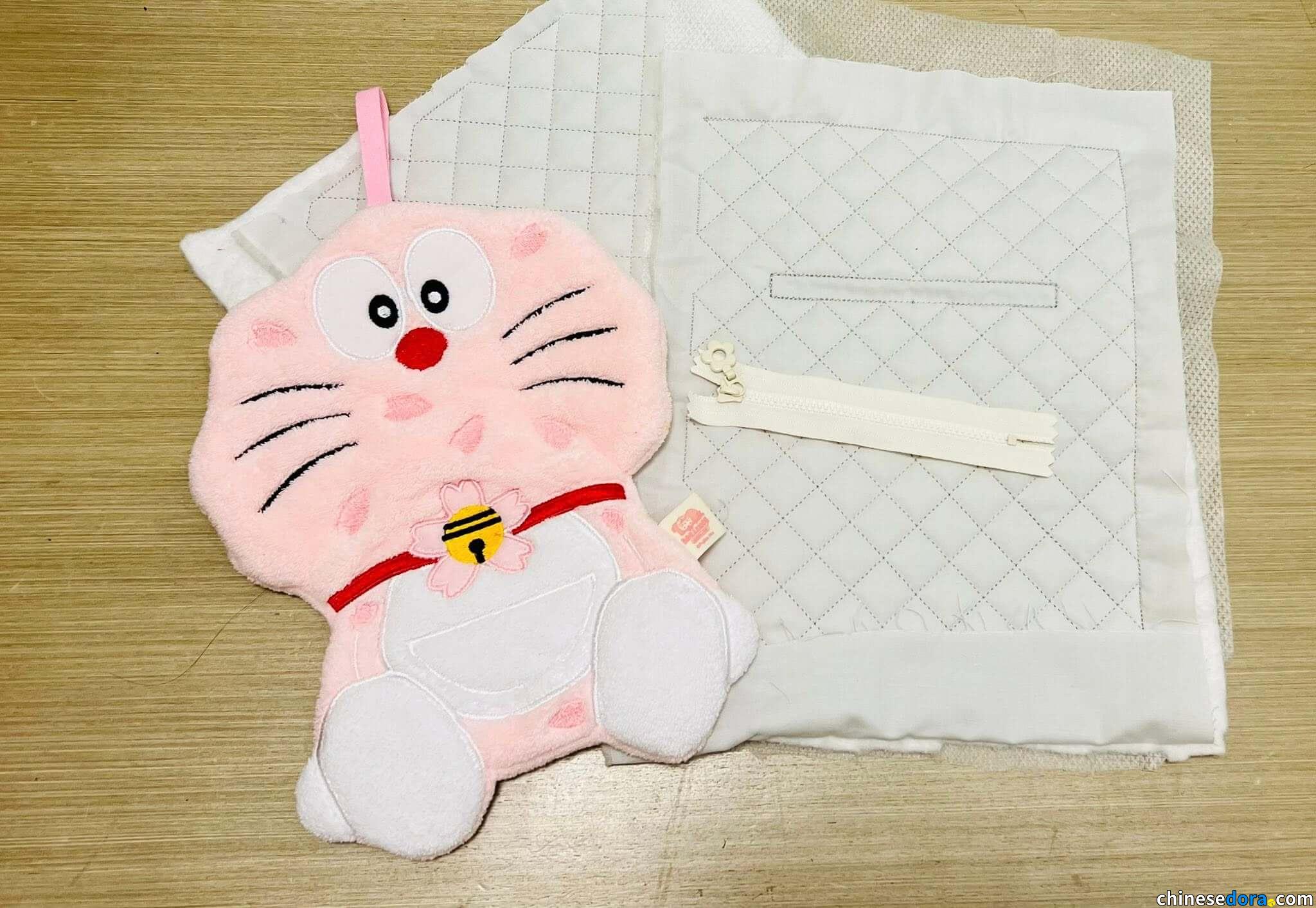 另一位網友 Kitty To 分享,考量抹手布本體造型可愛,變成公仔只能放在家中,於是發揮創意,將櫻花多啦A夢擦手布,改造成可以背出門的隨身小物收納袋。