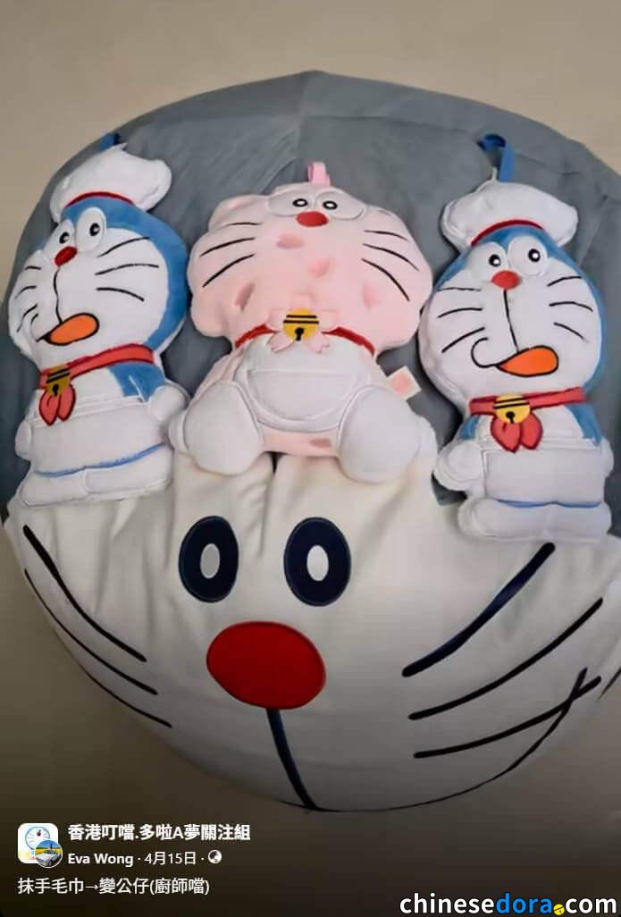 在香港「100%多啦A夢櫻花節」系列商品中,以粉嫩櫻花造型、廚師造型登場的多啦A夢(台:哆啦A夢)抹手布套裝,原本主打日常實用,近期在「香港叮噹.多啦A夢關注組」Facebook社團中,有粉絲分享了頗具巧思的「改裝玩法」,讓這款商品意外多了全新的使用方式。
