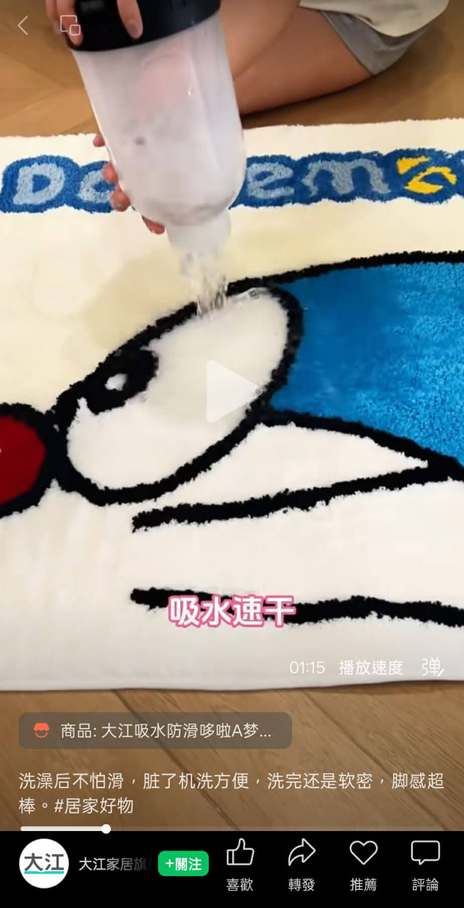 中國大陸廣東省的居家品牌「大江地墊」,近期再推出「哆啦A夢(港:多啦A夢)」主題地墊系列,實用與童趣的風格,讓每天洗澡睡覺的日常也有療癒儀式感!