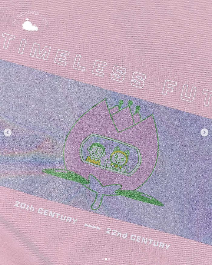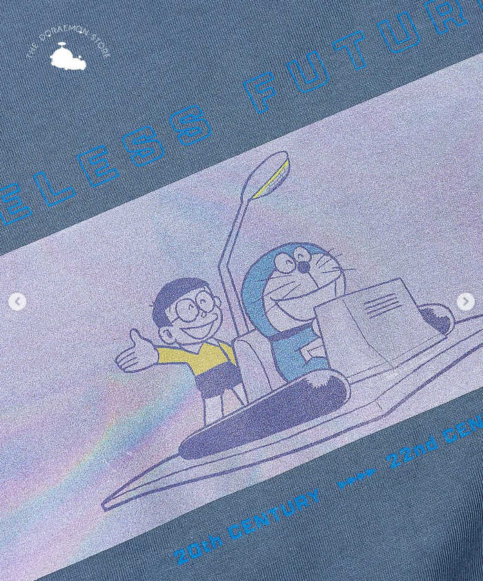 本次新品的最大亮點,將T恤前身與袖子設計成不同空間的視覺效果,結合哆啦A夢世界觀中的四次元概念,打造出極具層次感的服飾。