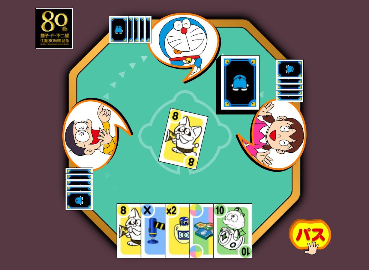 哆啦A夢、大雄、靜香等人決定召集好友們舉辦一場 UNO 大賽,玩家必須打敗他們才有機會奪冠!