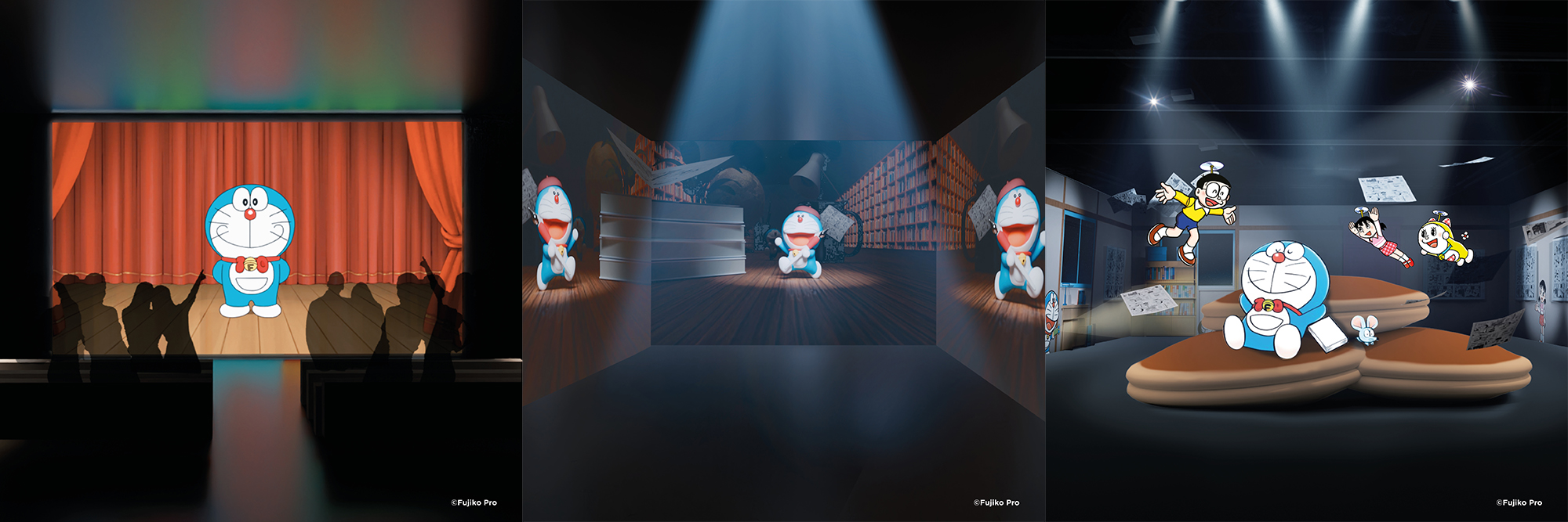 展區精心打造「100%微型劇院」,大螢幕獨家放映由日本團隊專為台灣展覽製作的原創短篇動畫!透過鏡面打造空間延伸感的「無限哆啦A夢世界」,及結合3D光雕投影漫畫單行本的「大雄的互動漫畫閱讀房間」,走進微型劇院彷彿置身在充滿奇幻與樂趣的哆啦A夢冒險故事中。