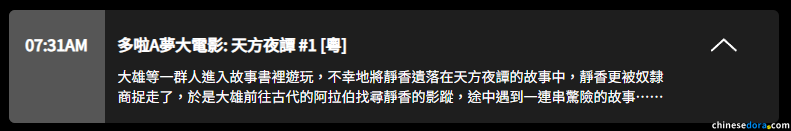 TVB 旗下串流平台 myTV SUPER 的收費頻道 SUPER Kids Channel 會在 5 月 10 日安排播映多啦A夢電影,播出作品為《電影多啦A夢:天方夜譚》。