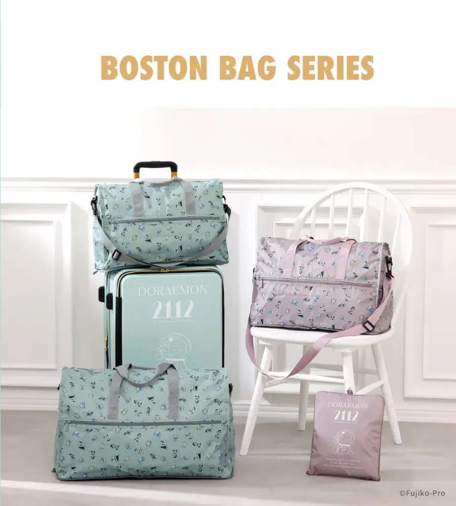 另外這款哆啦A夢尼龍材質波士頓包,也全新登場囉!這款旅行袋有滿版的哆啦A夢圖案,不使用時可摺疊收納起來,顏色也是春天的粉色與綠色,與同系列的行李箱搭配使用,可愛度更是加倍升級!尺寸有M、L號,售價為 5280 與 6160 日圓。