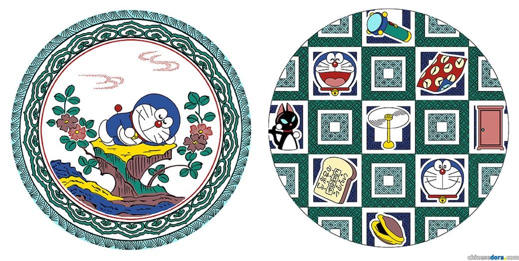至於這套可愛的小碟子,是將傳統九谷燒和日本國民角色哆啦A夢結合設計,一共推出了兩種款式。一款有可愛的芙蓉花圖案,上面畫著一隻趴著的哆啦A夢;另一款則為鵝卵石圖案,上面畫著哆啦A夢與道具(法寶)縮小燈/縮小電筒、時光布/時間布、來來貓、竹蜻蜓、任意門/隨意門、記憶麵包以及銅鑼燒/豆沙包的圖案。