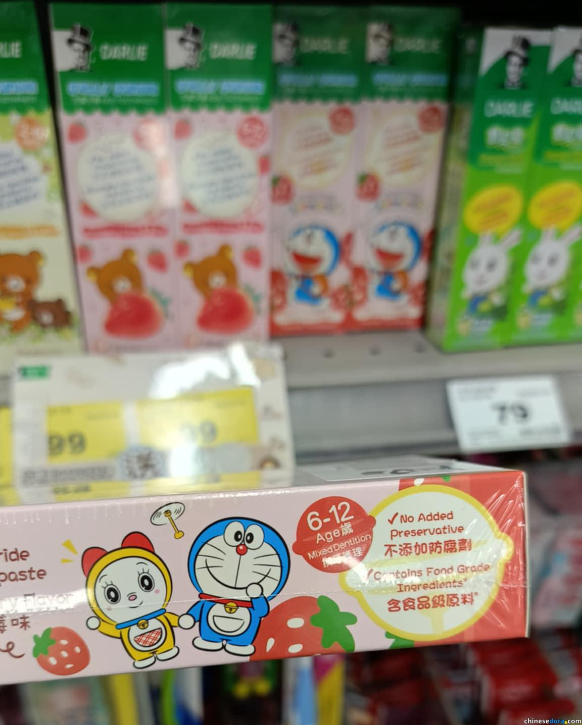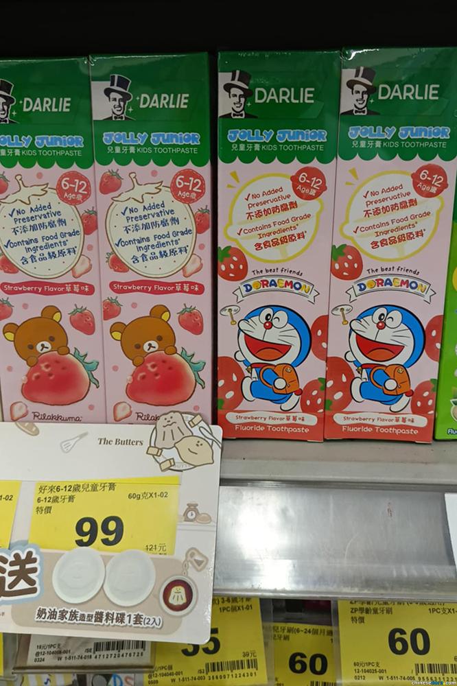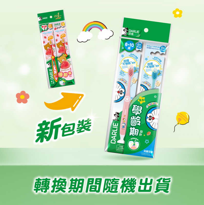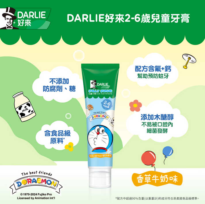好來牙膏(DARLIE,原黑人牙膏)的兒童系列換上哆啦A夢(港譯:多啦A夢)的包裝囉!現在台灣的家樂福與好來線上通路買得到新版包裝!