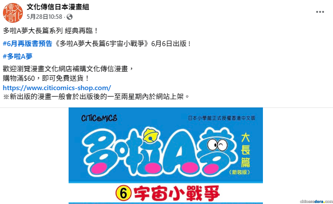更多關於文化傳信推出的《多啦A夢》「香港中文版」漫畫書的販售通路等相關詳情,可參閱下列資訊。