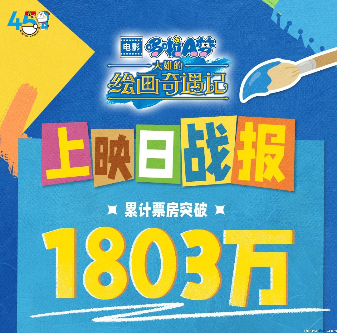 哆啦A夢(港譯:多啦A夢)電影《大雄的繪畫奇遇記》(本站暫譯「大雄的繪世界物語」,又譯「大雄的繪畫世界物語」)目前於中國大陸上映中,票房現已突破人民幣 2000 萬元!