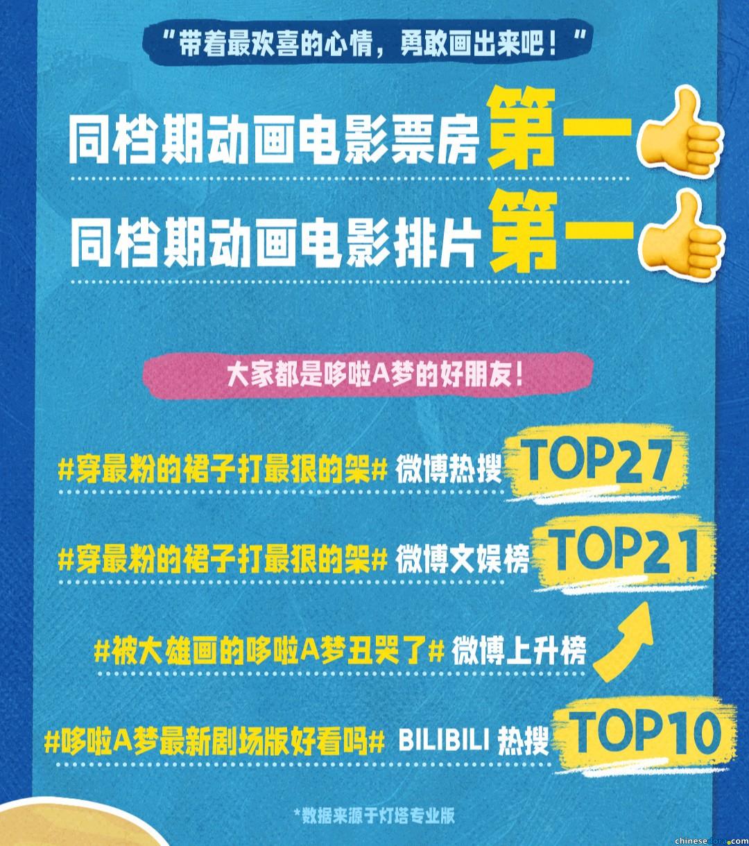 同日晚上緊貼更新兩度公佈最新數字,晚上首輪公佈錄得人民幣 1803 萬元票房之餘,更是同檔期動畫電影票房及排片第一!另外,根據燈塔專業版的數據,電影在微博及 bilibili 也有一定討論度,在熱搜等排行榜亦錄得高名次。而當日最終公佈更確定票房突破了人民幣 2000 萬元!