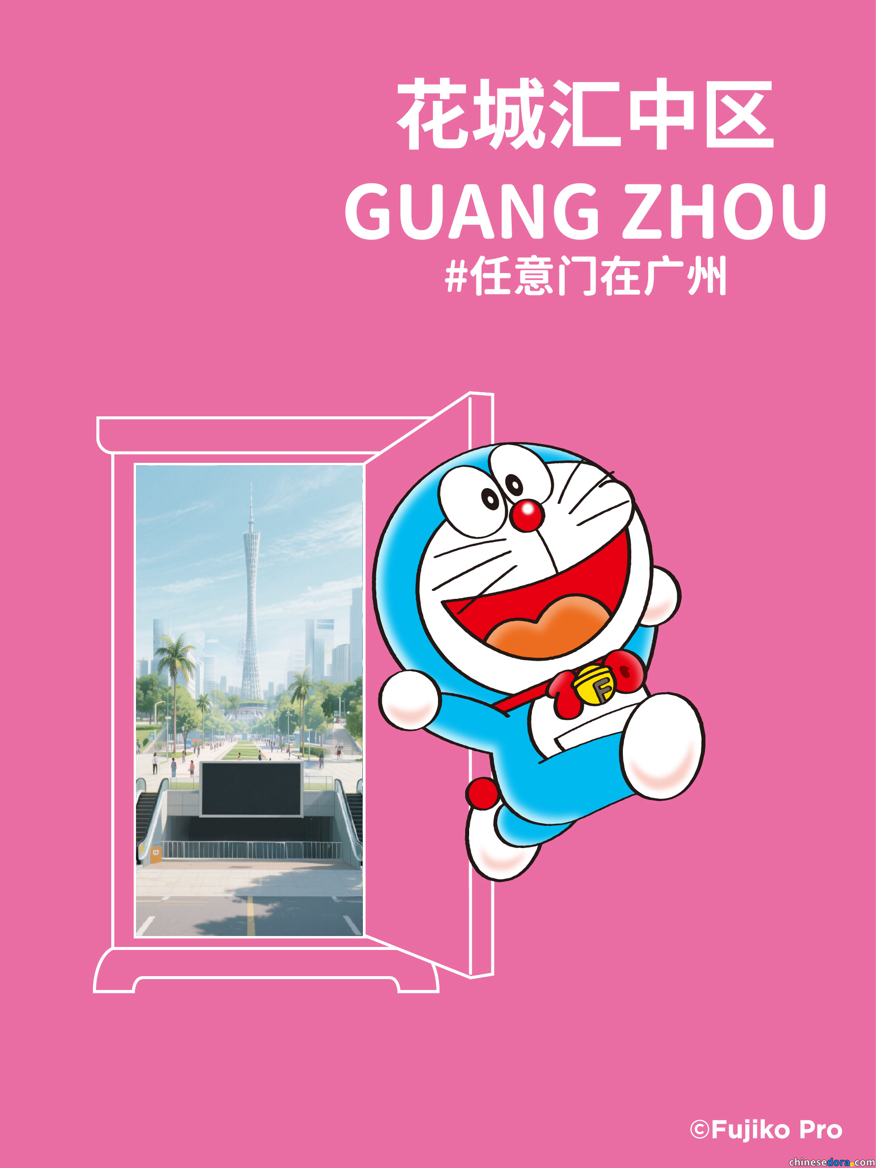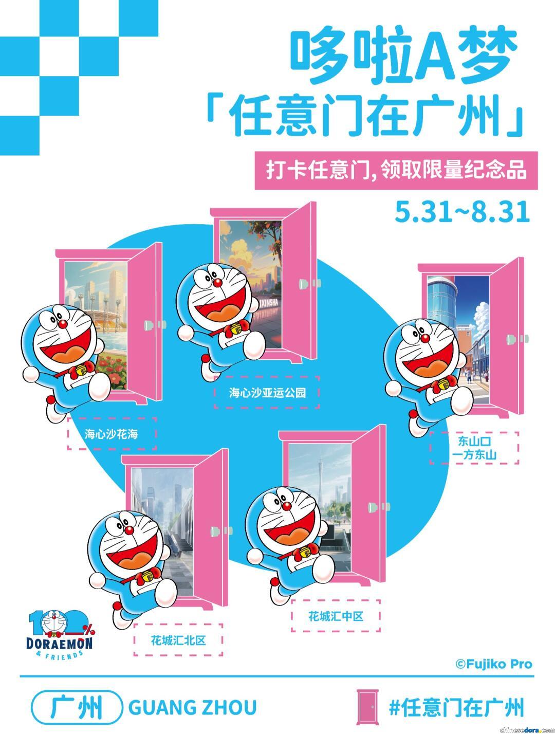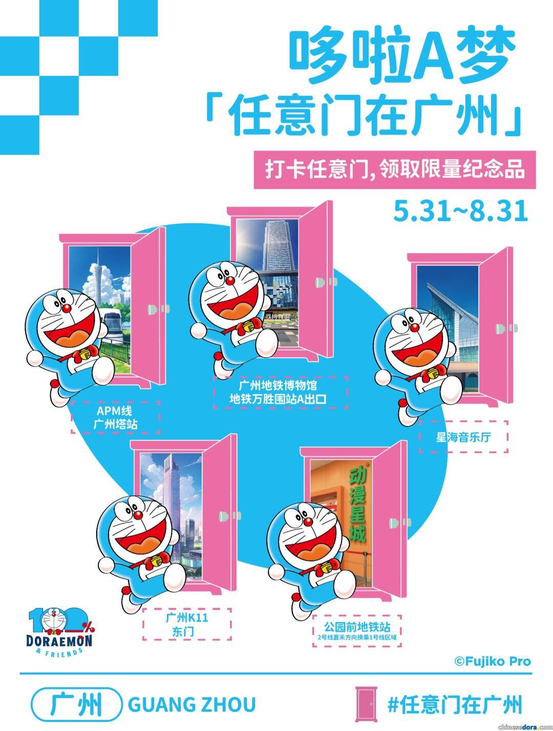 「任意門在廣州」為「100%哆啦A夢&FRIENDS」巡迴特展的衍生活動,哆啦A夢(港:多啦A夢)與經典道具「任意門」(港:法寶「隨意門」)的裝置物在展覽會場以外的地方展出,這次分佈於 10 個不同地點,讓大家一同穿梭有「羊城」之稱的廣州!任意門擺放地點包括: