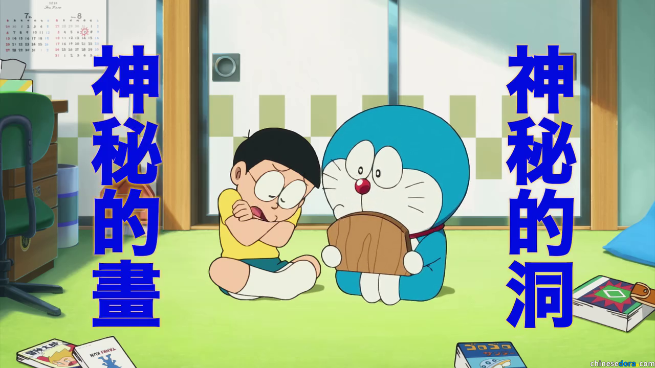 大雄:「一個神秘窿加幅神秘畫,點解幅畫會喺天跌落嚟呢?」(資料圖片,香港版預告截圖)