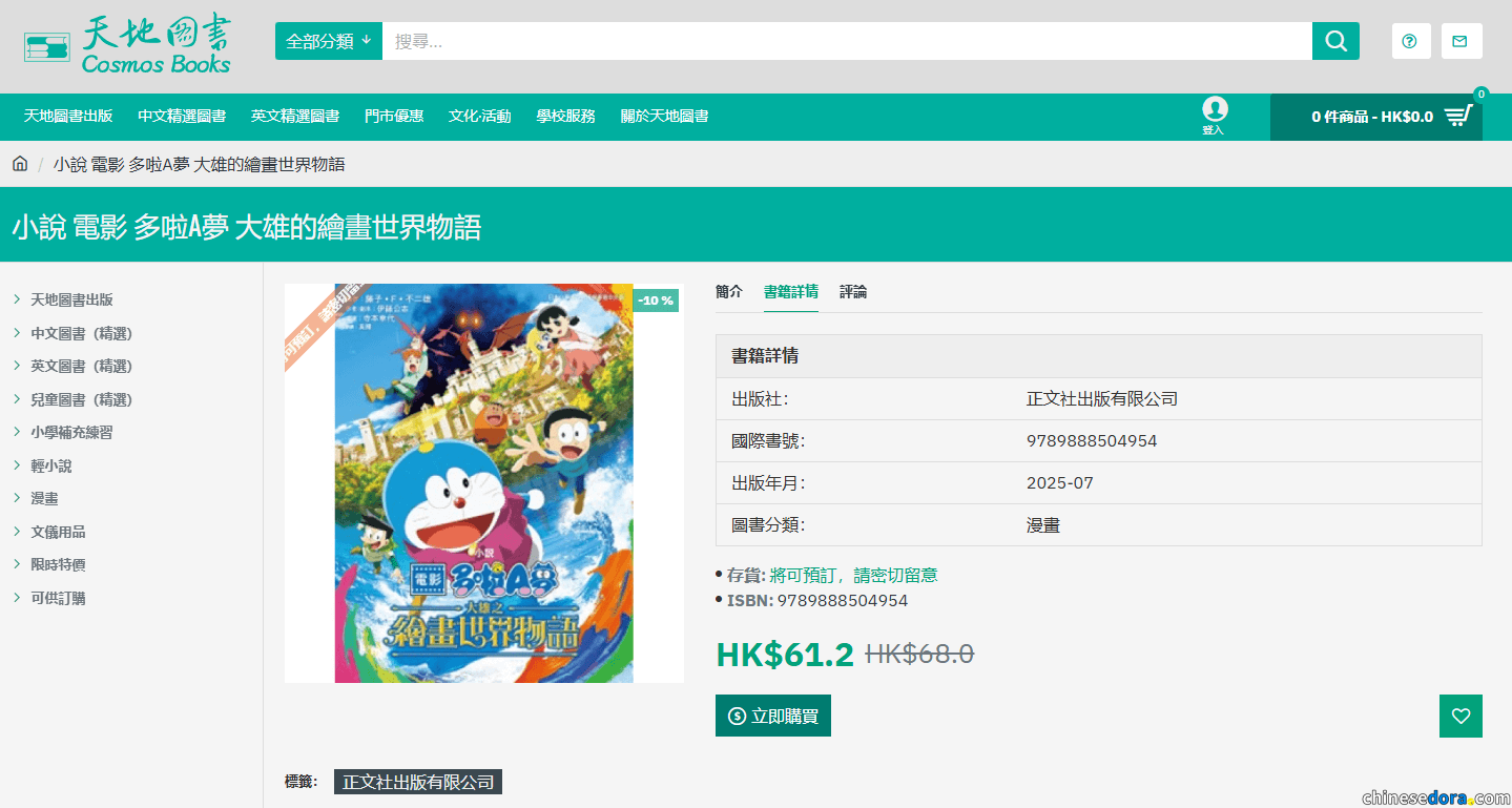 ※註:平台上顯示的產品書目名稱為「大雄的繪畫世界物語」,而從圖片可見封面上的電影 LOGO 為動畫電影所用的香港公映片名「大雄之繪畫世界物語」。