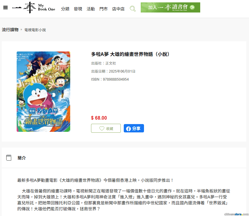 [香港] 《多啦A夢》電影小說將推出香港中文版!?《大雄之繪畫世界物語》小說料上映同步推出 出版社預計為正文社