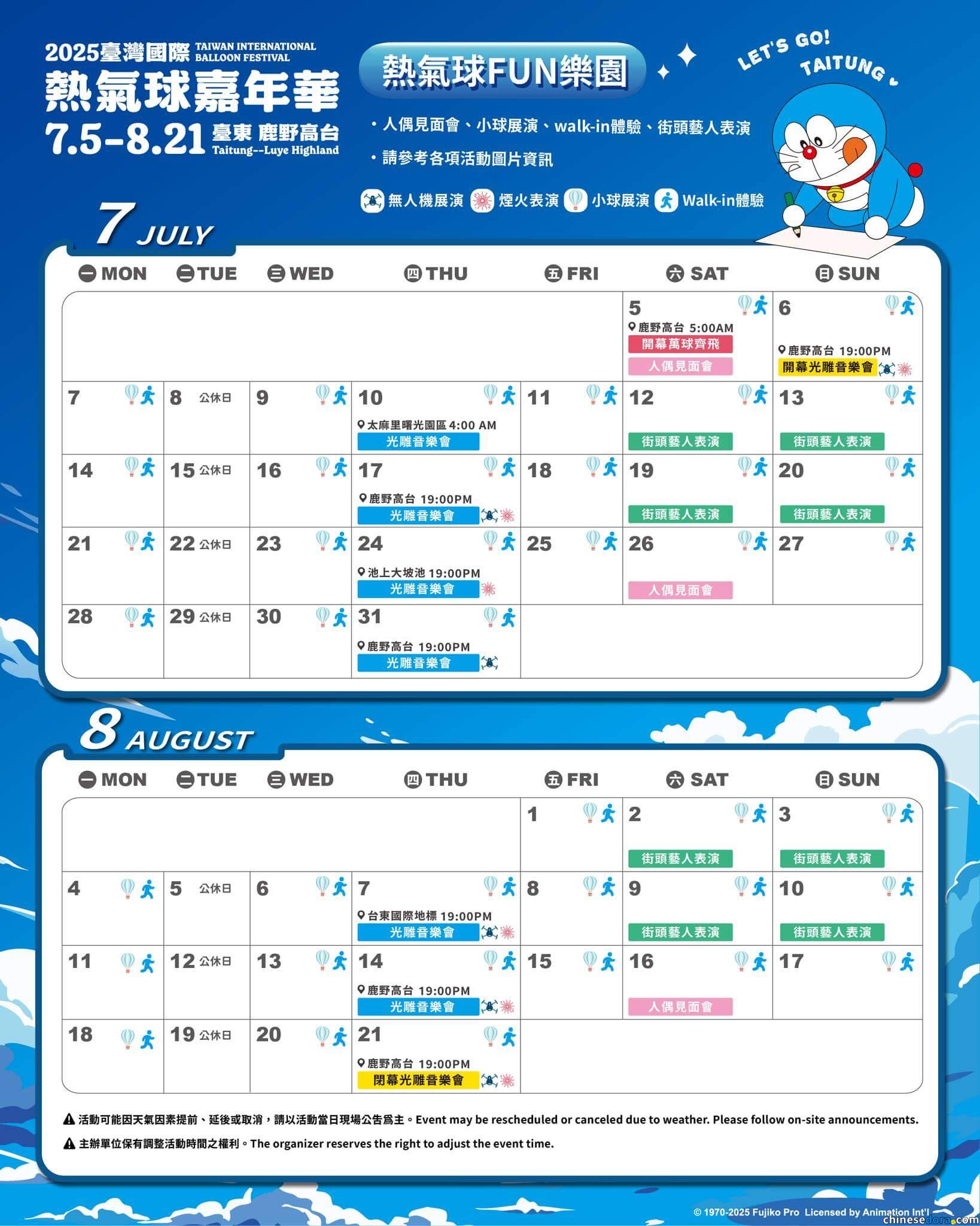 延伸閱讀[台灣] 「2025台灣國際熱氣球嘉年華」追球日誌公開 哆啦A夢造型球展演每天都有