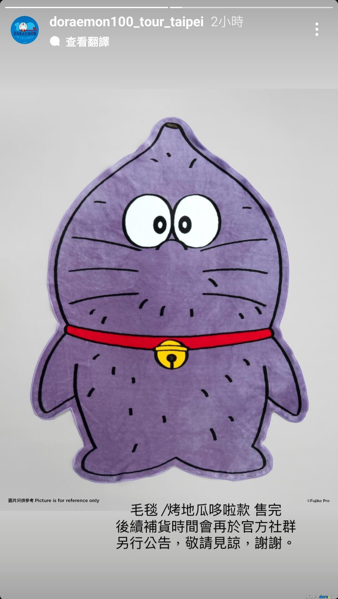 另外,同日亦宣佈三款紀念品完售,後續補貨時間將另行公告,產品包括「畫家造型肩膀毛公仔」、「毛毯/烤地瓜哆啦款(番薯)」、台灣展覽限定款「主視覺資料夾」。