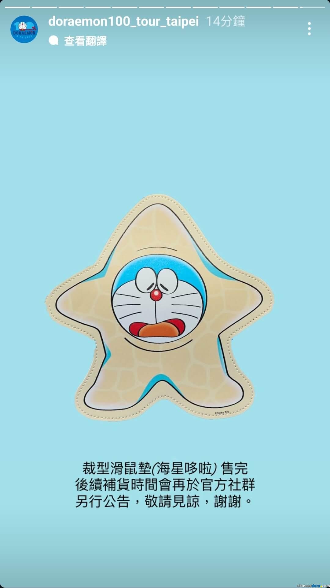 根據「100%哆啦A夢&FRIENDS」巡迴特展台北站粉專 7 月 3 日發佈的限時動態,冬日裝造型「打雪仗 毛絨鑰匙圈」(香港首賣款)、「裁型滑鼠墊(海星哆啦)」(台灣限定款)售完,主辦方之後會另行公告補貨時間。